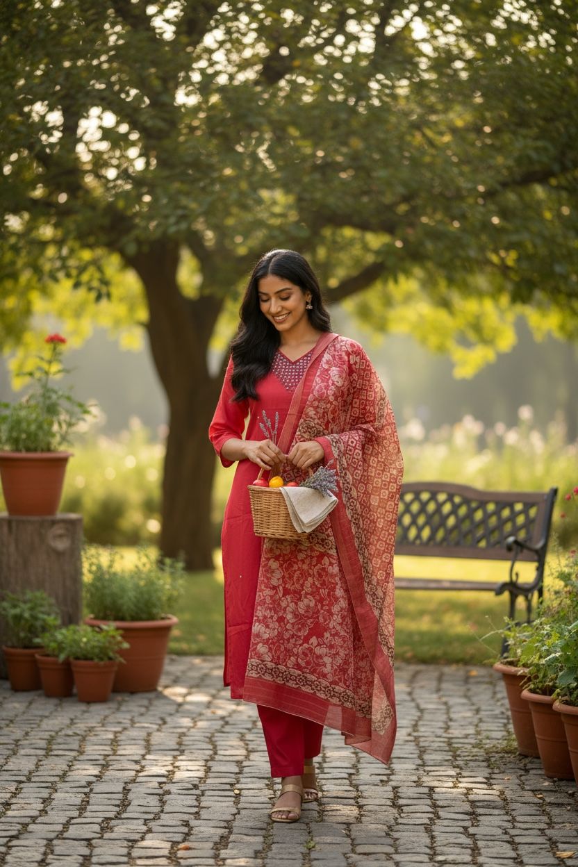Elevate your ethnic wardrobe with this Bright and elegant Heavy Rayon Kurti Set, perfectly paired with matching pants and an Orgenza dupatta. Designed for women who love a blend of simplicity, sophistication, and tradition, this ensemble offers both comfort and style.