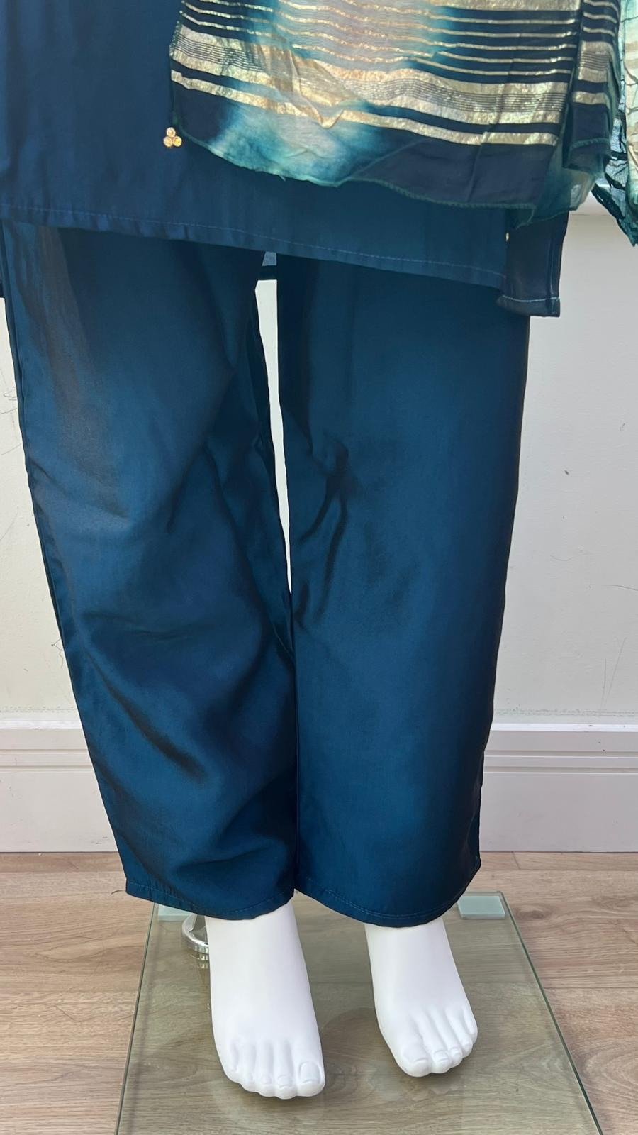 Grace meets tradition in this beautifully crafted Midnight Blue Chanderi Silk Kurta, Pant, and Dupatta set.