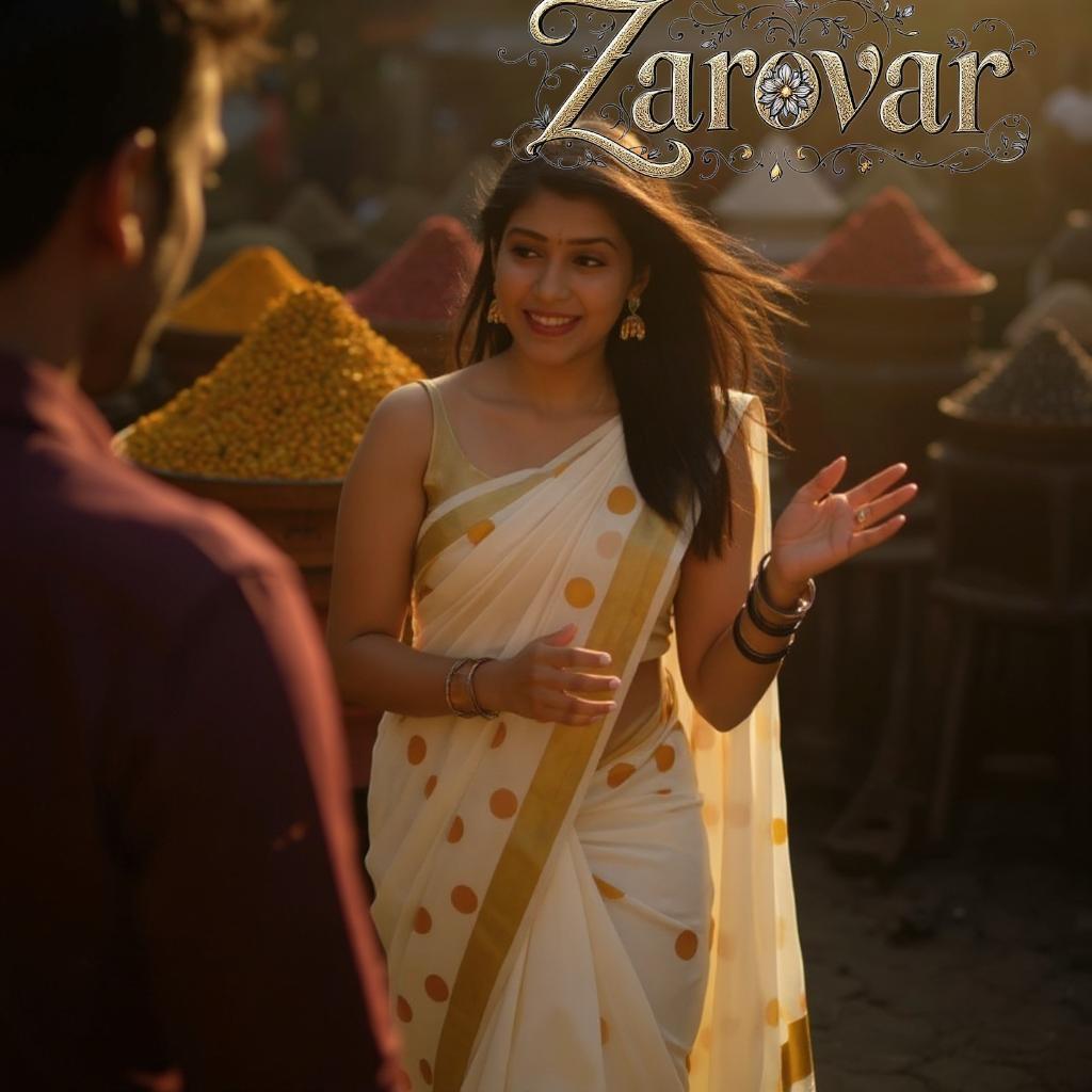 Design: Elegant polka dot pattern with traditional Kerala saree finish