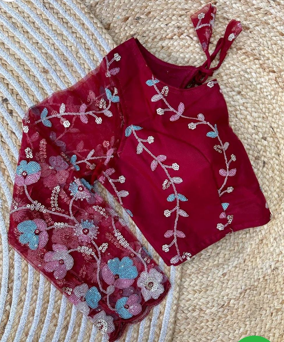 Shine with grace in this beautifully designed Super Net blouse, embellished with heavy sequin work in a 5-sequence pattern. The elegant 20-inch full sleeves add sophistication, making it a perfect choice for festive celebrations, weddings, or parties.