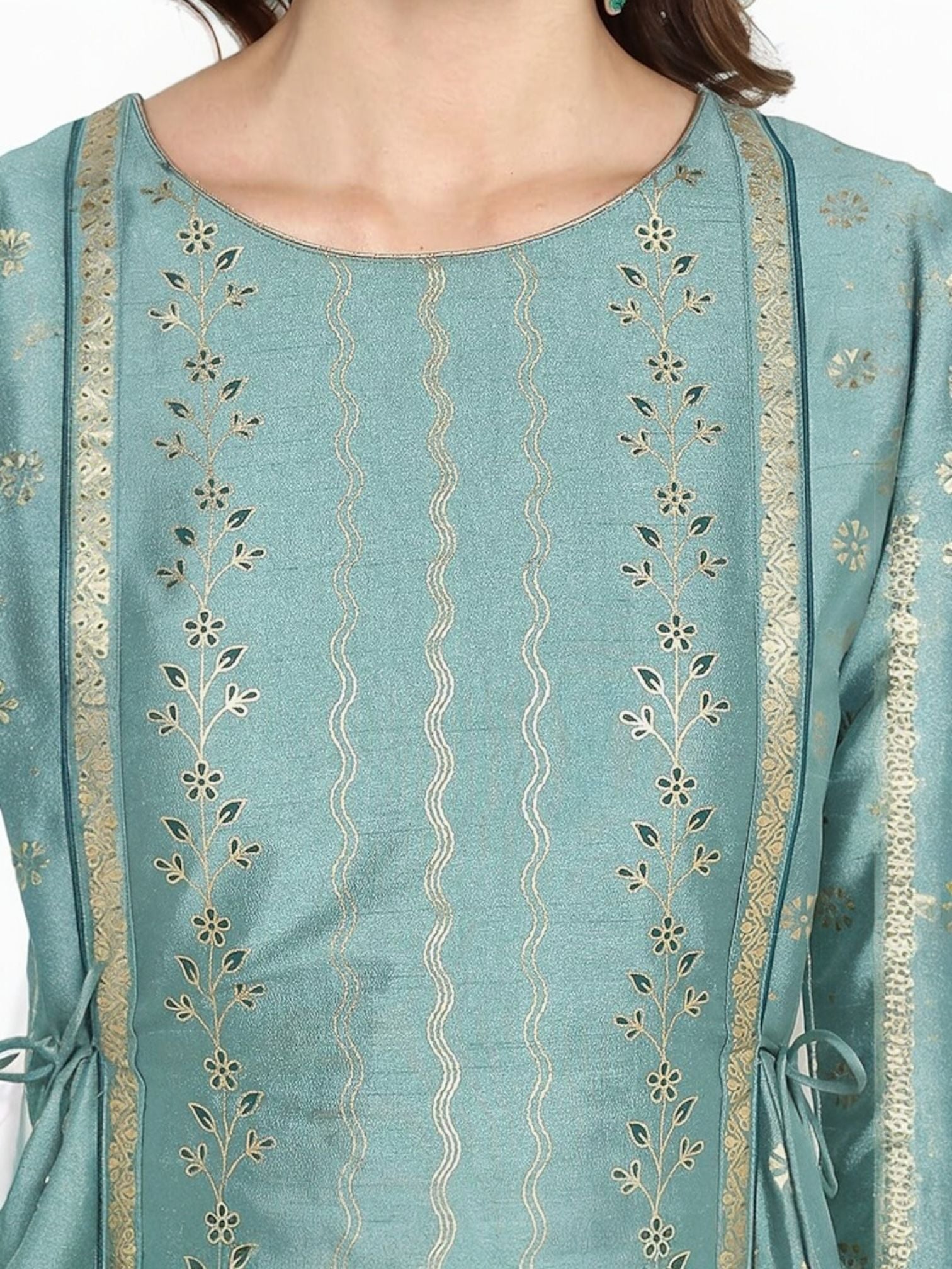 Women's Silk Blend Foil Printed Flared Ethnic Ankle Length Kurta Dress